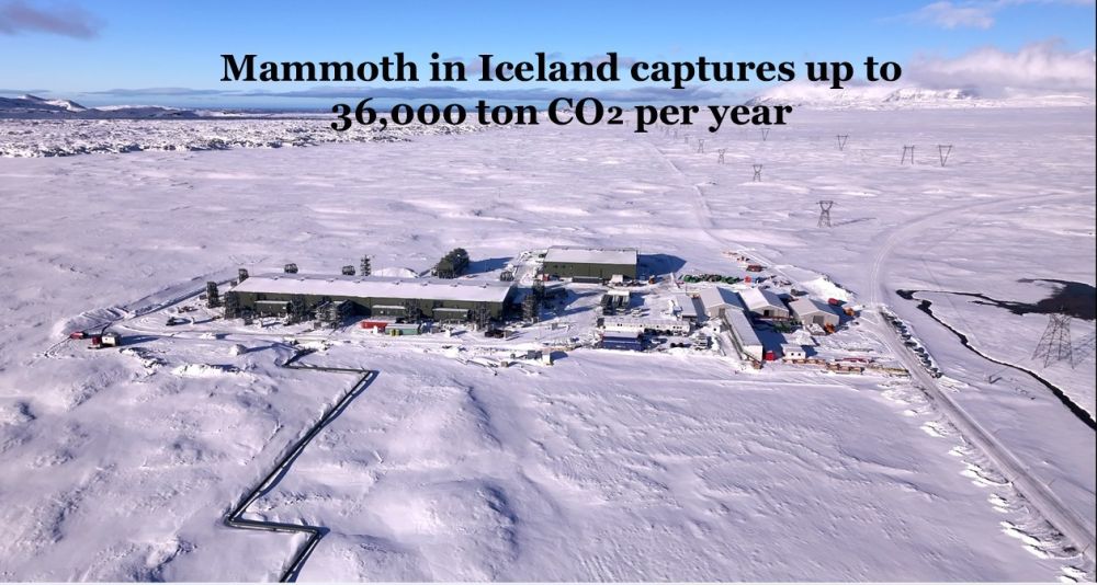 - Mammoth (Iceland, 2024): The largest DAC+S plant globally, Mammoth captures up to 36,000 t CO₂ per year. It is powered entirely by geothermal energy from ON Power and will be fully operational in 2024.